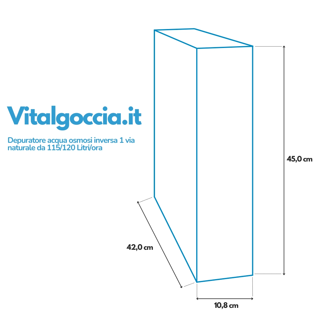Il depuratore acqua osmosi inversa Vitalgoccia 1 via con produzione da 115/120 litri/ora è pensato per chi desidera un’acqua naturale purificata direttamente dal rubinetto di casa. Compatto e installabile sotto lavello, è la soluzione ideale per chi cerca qualità, prestazioni elevate e zero ingombro.