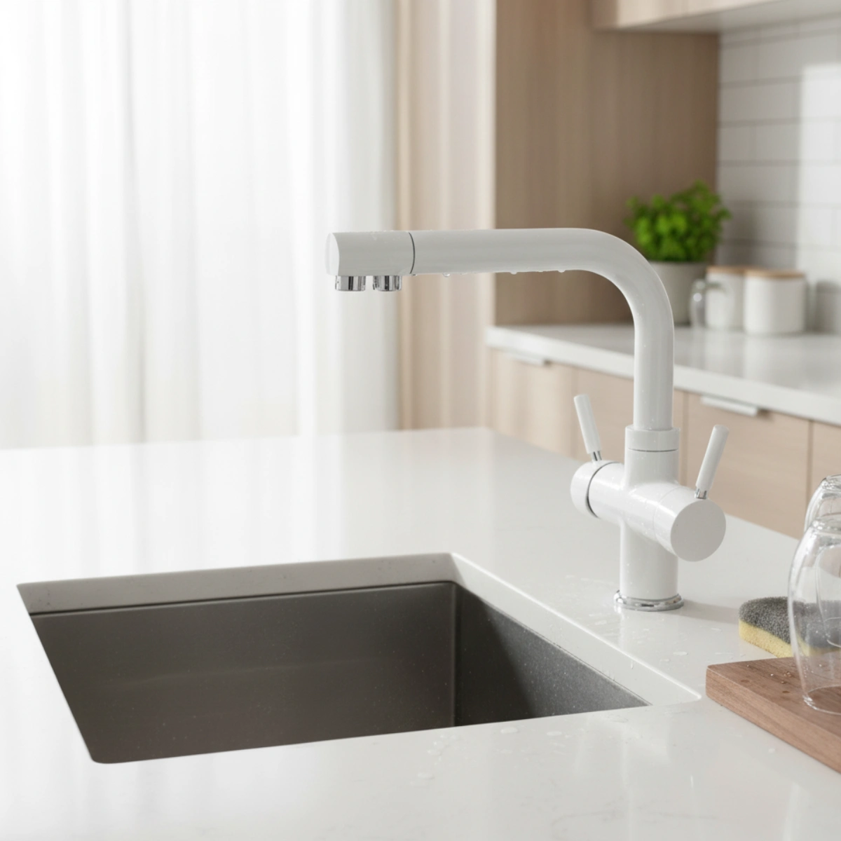Il rubinetto Arvon 4 vie bianco è la scelta ideale per chi desidera combinare funzionalità avanzata e un’estetica pulita nella propria cucina. Pensato per impianti con depuratore, consente di gestire quattro flussi d’acqua da un solo punto.