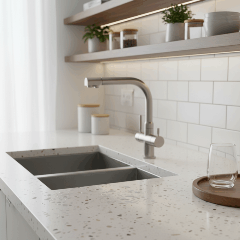 Il rubinetto Arvon 4 vie in nickel spazzolato è progettato per offrire funzionalità avanzate in cucine moderne dotate di sistemi di filtrazione. Permette l’erogazione separata di acqua calda, fredda, depurata e frizzante attraverso un unico miscelatore, semplificando l’utilizzo quotidiano.