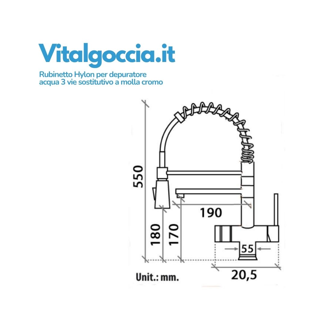 Rubinetto Hylon per depuratore acqua 3 vie sostitutivo a molla cromo