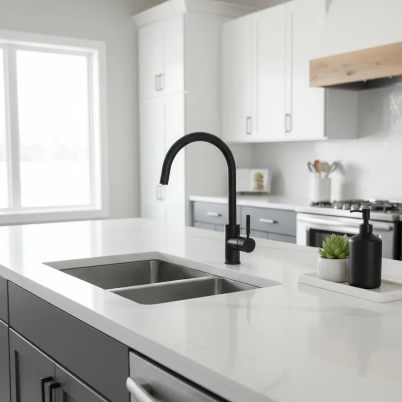 Il rubinetto Selaris 3 vie nero opaco è la scelta ideale per chi cerca un’estetica moderna unita a funzionalità avanzata. Progettato per l’erogazione di acqua calda, fredda e depurata, offre un’unica soluzione compatta e raffinata per la cucina.