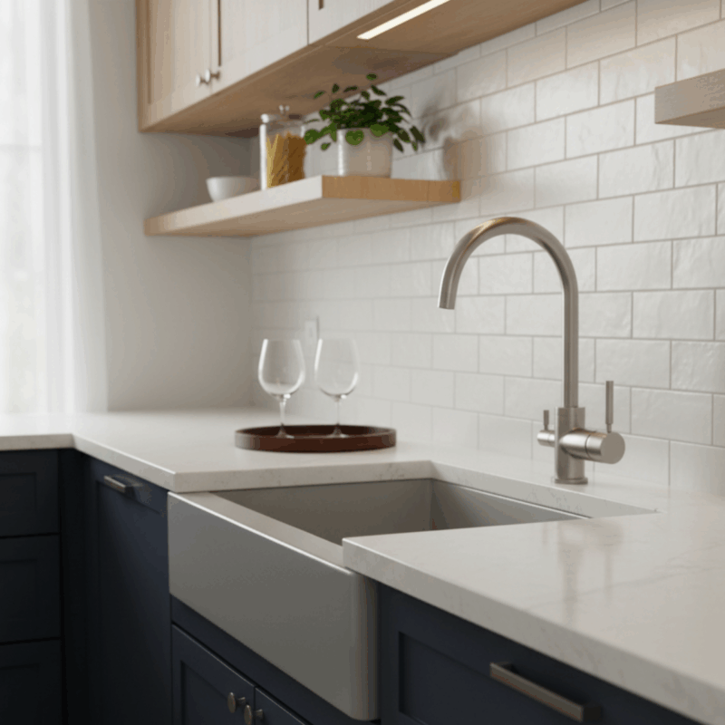 Finitura nickel spazzolato: sobria e resistente, si abbina con facilità a lavelli in acciaio inox e cucine moderne.